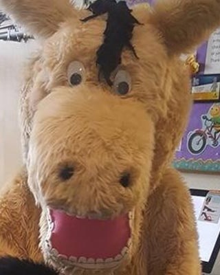 Bucky Bronco is our mascot and team member. He visits schools and participates in community parades. His favorite parade is Carson Valley Days. Bucky makes special appearances and helps teach about oral health to the public. He can be found grazing in the pasture and galloping in the Carson Valley with his herd. He is Dr. D’Ascoli’s favorite companion. Bucky is in treatment with braces getting his overbite corrected. Come give him a big hug the next time you see Bucky in your neighborhood!